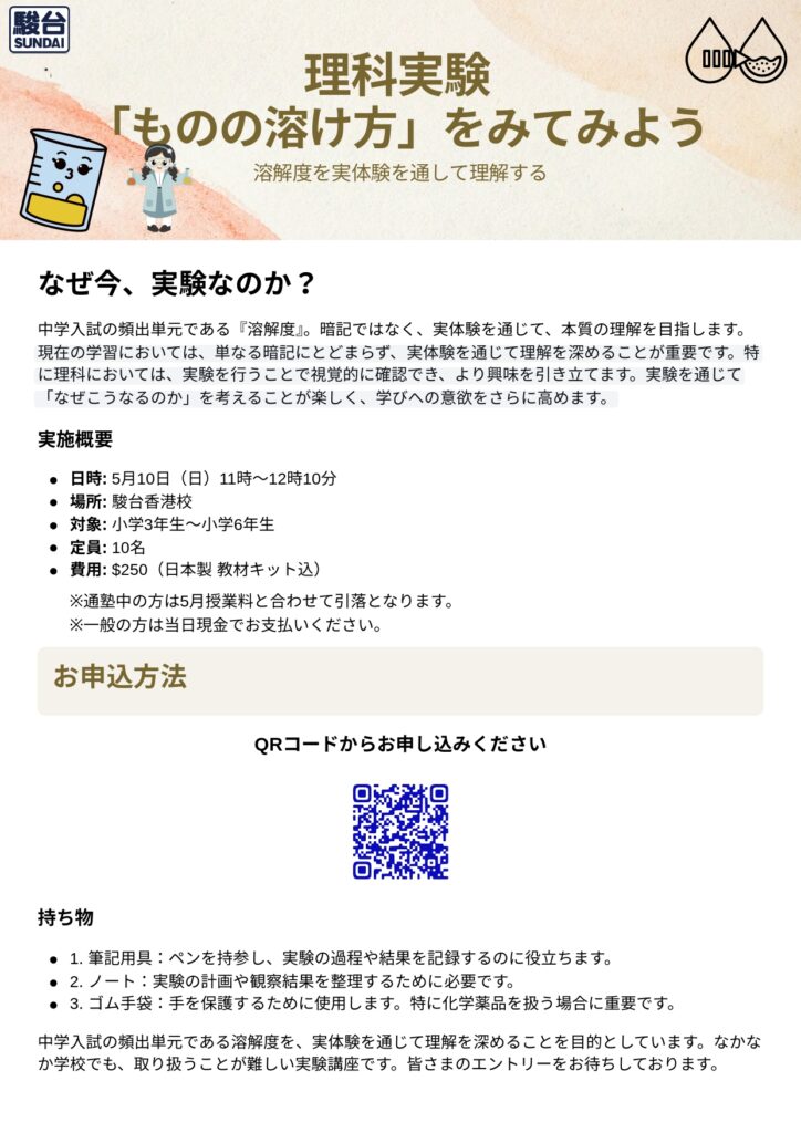 理科実験「ものの溶け方」をみてみよう|駿台香港校