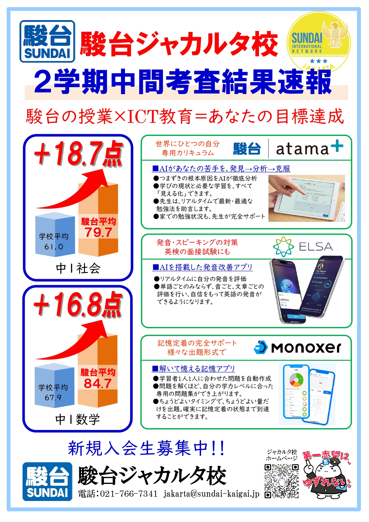 2学期中間考査 結果速報|駿台ジャカルタ校