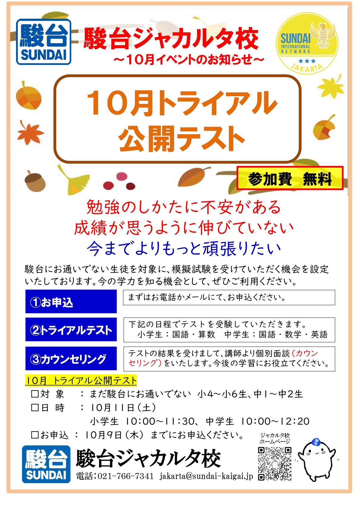 10月トライアル公開テストのご案内|駿台ジャカルタ校