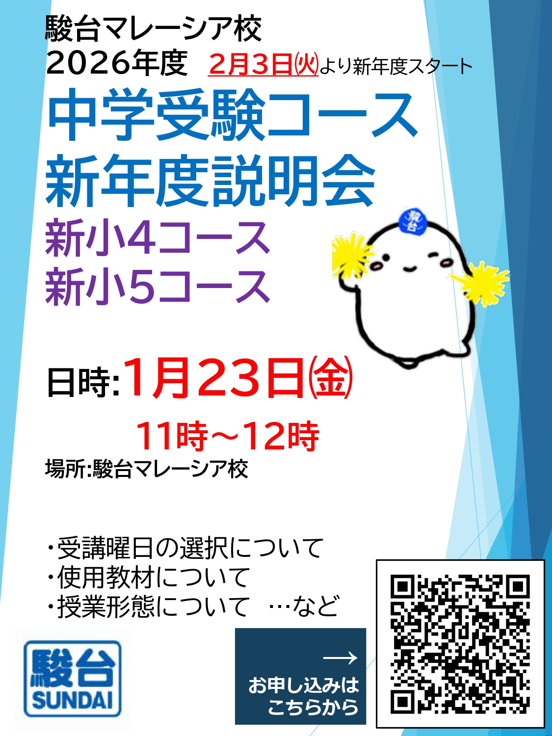 中学受験コース新年度説明会のご案内|駿台マレーシア校