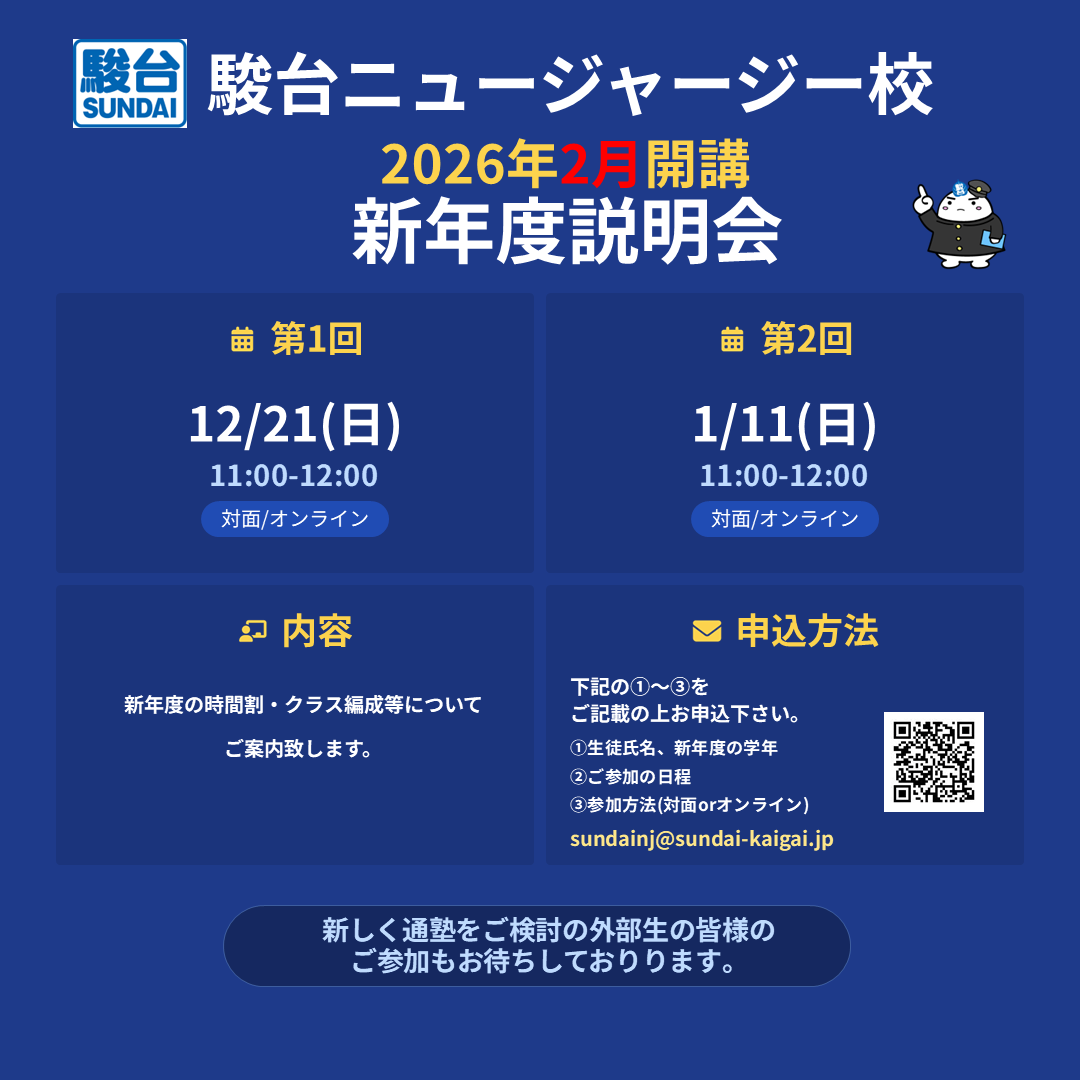 2026年度 新年度説明会のお知らせ|駿台ニュージャージー校