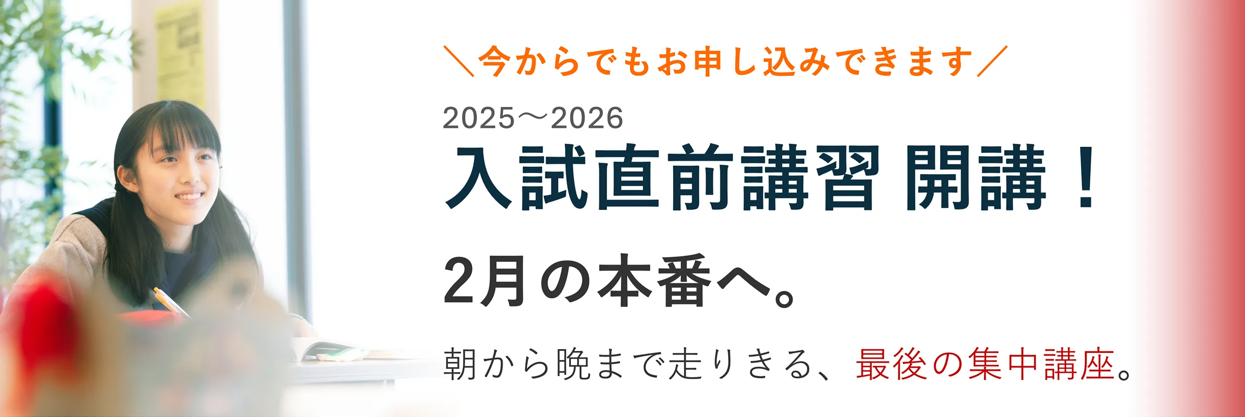 入試直前の皆さんにとって最高の環境です。