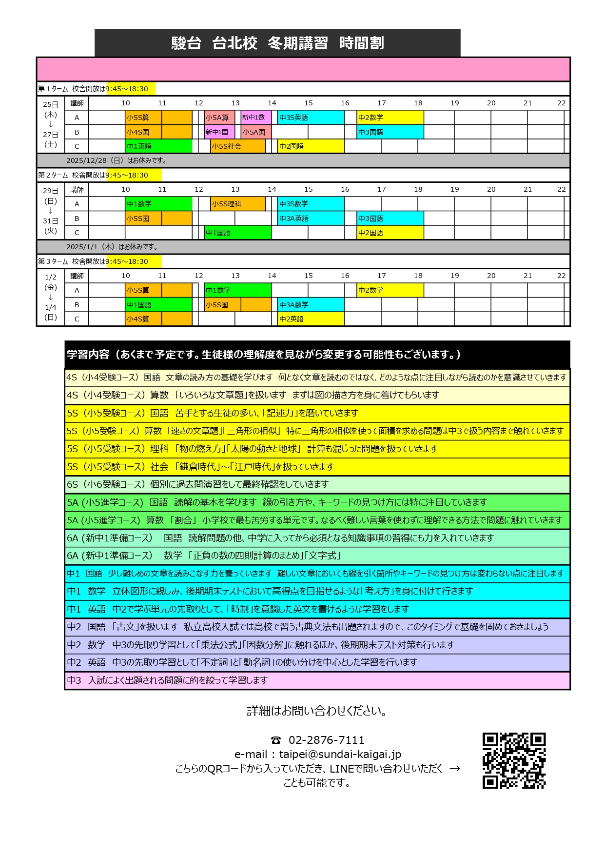 中2、中3生は12月上旬にも冬期講習プレタームを実施予定です。